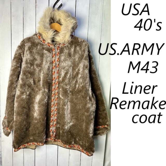 > 米軍実物リメイク 40s 1943年製 M43 フード付きファーライナーリメイクコート S 大きめM~L アルパカファー ミリタリー ヴィンテージ ●36