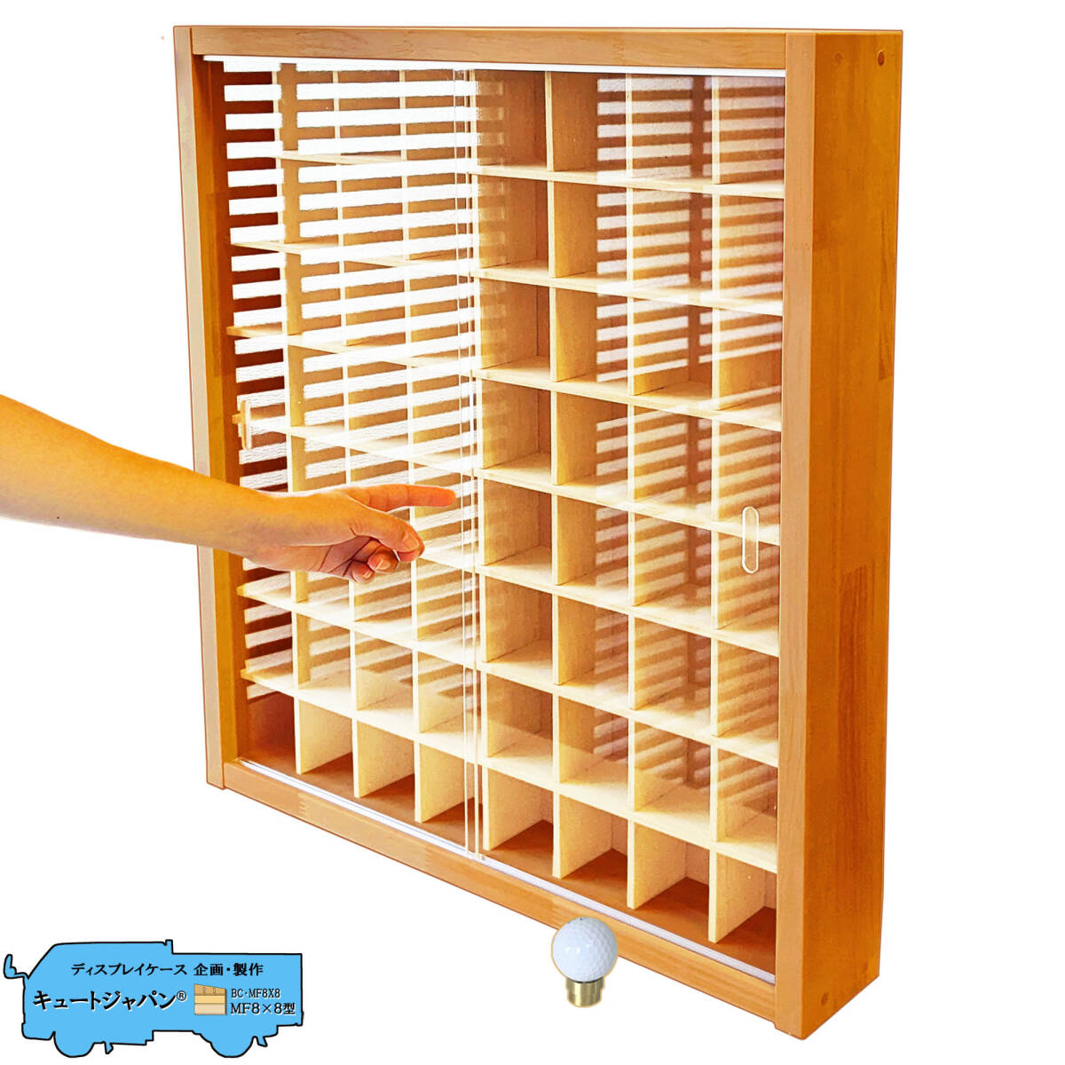 - 【送料無料☆リピート多数】ゴルフボール コレクションケース ディスプレイ 木製収納棚 アクリル障子付 メープル色塗装 日本製