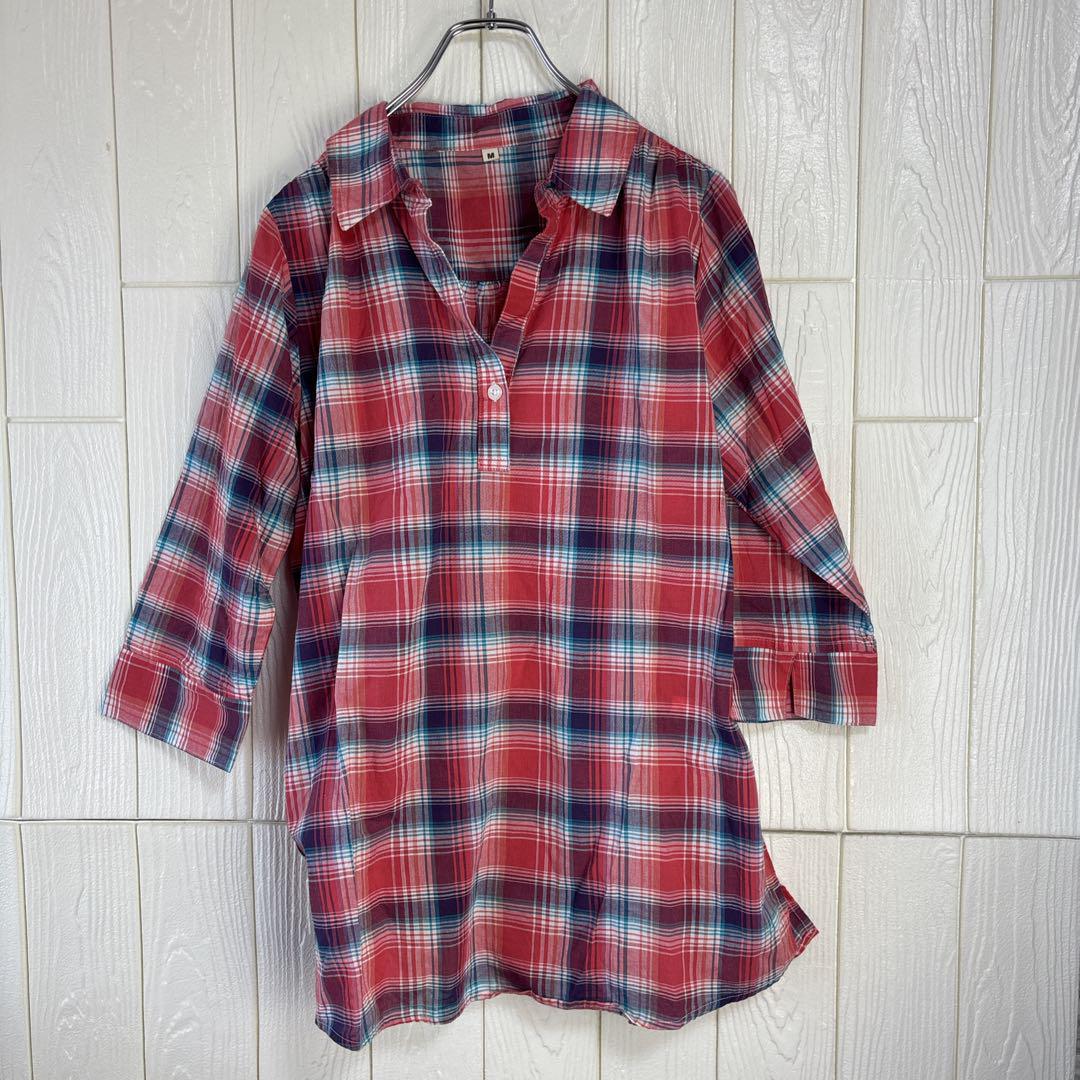 - チェック柄 チュニック Mサイズ 綿100% 7部丈