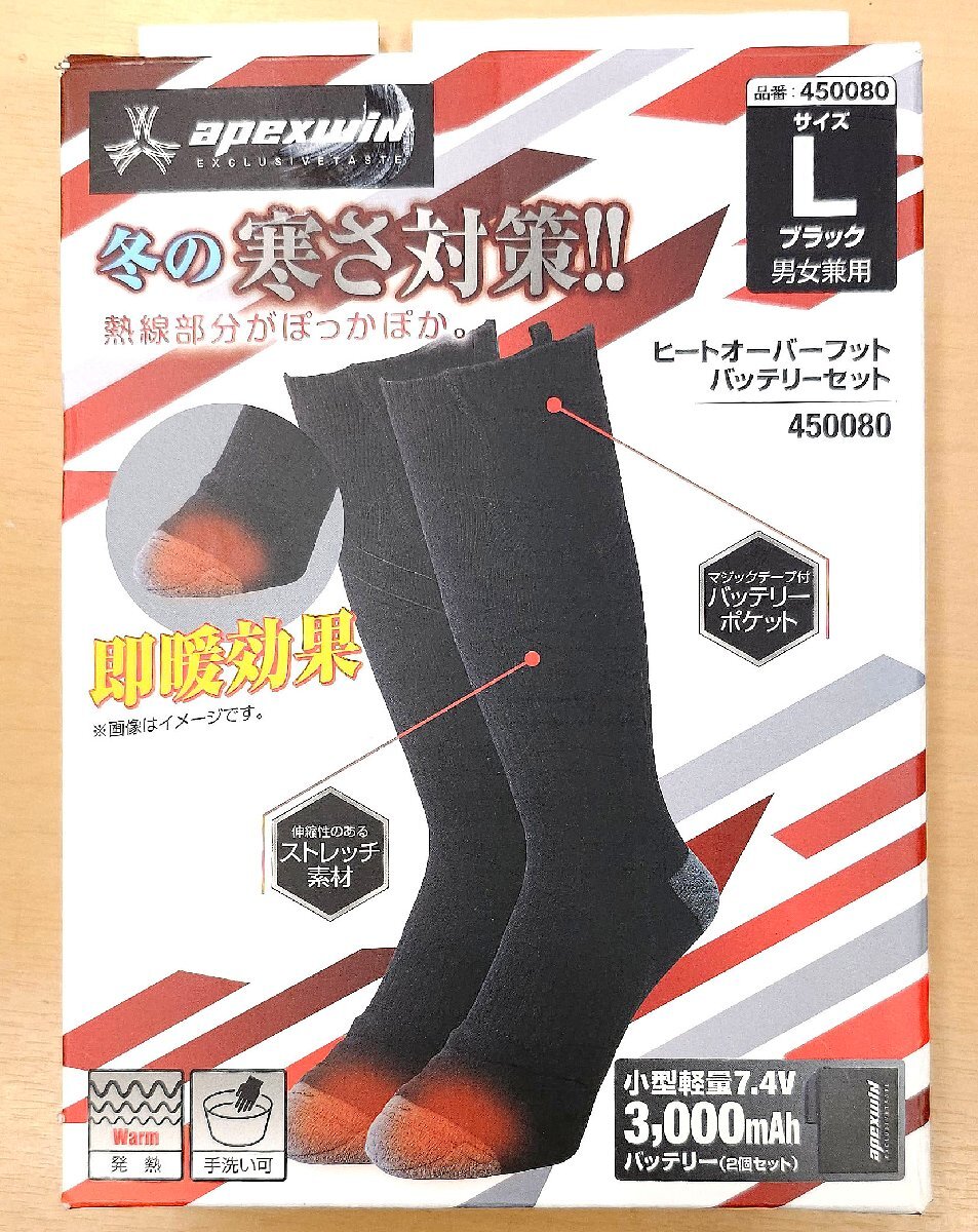 - 新品 アタックベース 防寒 速暖 マイクロカーボンファイバー ヒートオーバーフット バッテリー2個セット 450080 ブラック Lサイズ 電熱靴下