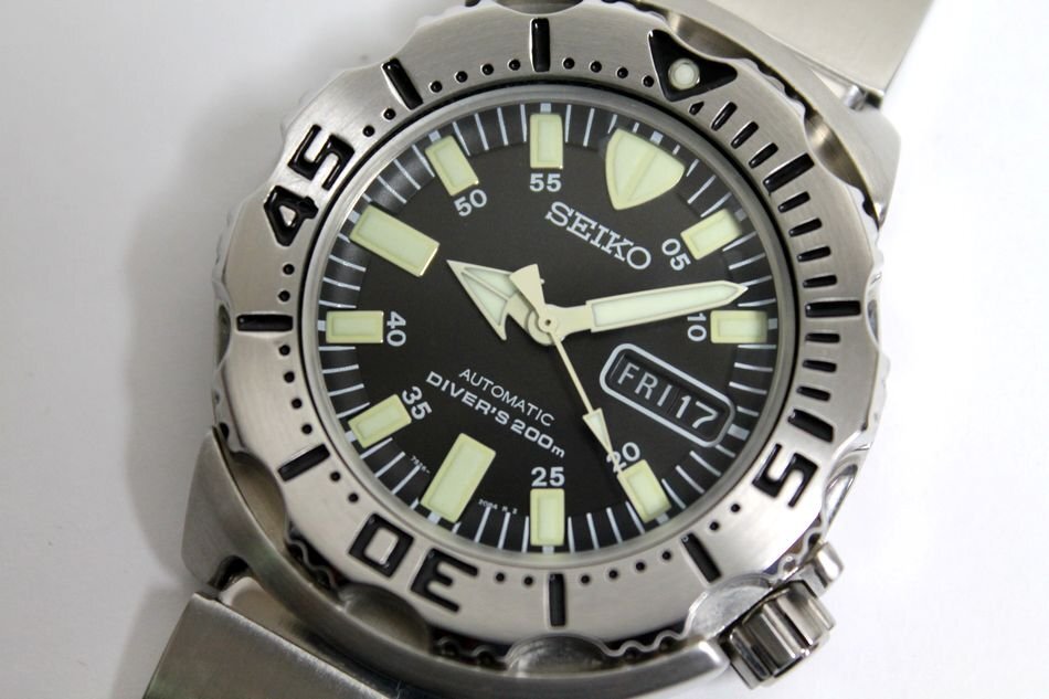 - 動作品 SEIKO ダイバーズ ブラックモンスター オートマチック メンズ腕時計 7S26-0350 3針 デイデイト シルバー 自動巻き SS セイコー 中古