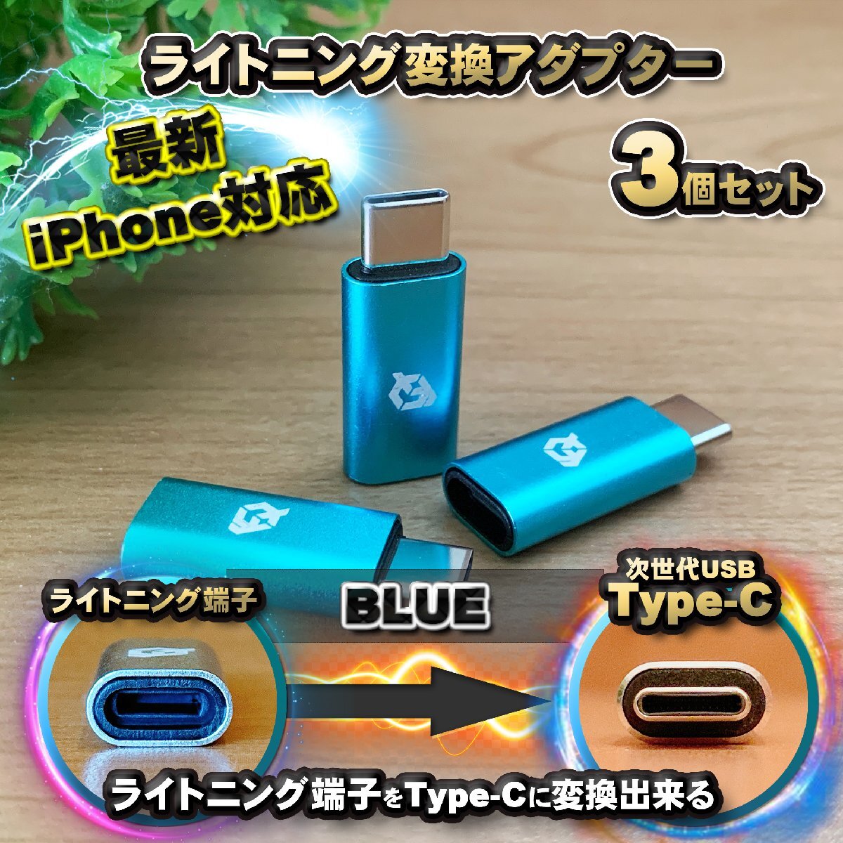 - 【最新 iPhone/Android 両対応】 iPhoneのライトニング端子 → USB Type C 端子 に変換出来る アダプター x3 【ブルー】