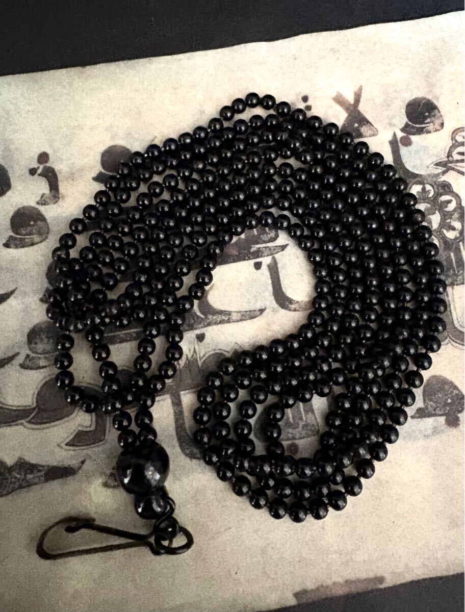 > ★英国アンティーク 漆塗りビーズ装飾 マフ/ガード/ウォッチ ロング 懐中時計チェーン 2連ネックレス 128cm ビクトリアンファッション