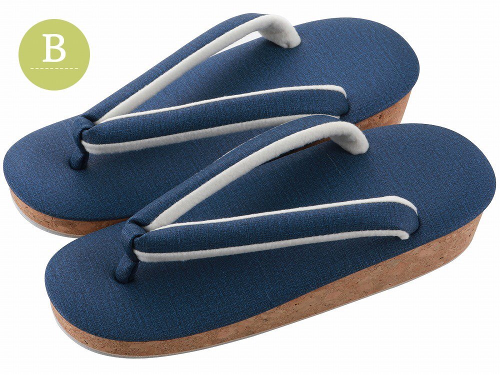 > ■日本製■コルク 草履 お洒落 ソフト鼻緒 一枚芯 23.5cm ku-20 (B青) 【カジュアル 紬 小紋 着物 和装】
