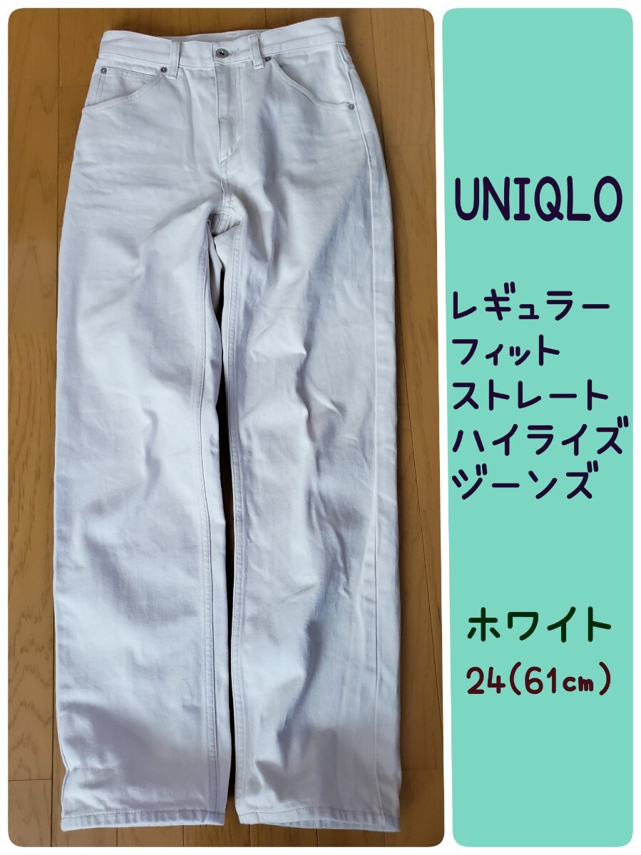 - 送料無料★UNIQLO ユニクロ レギュラーフィットストレートハイライズジーンズ24(61㎝) ホワイト 436663