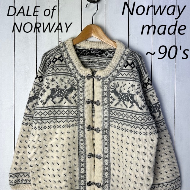 > 80s~90s DALE of Norway メタル金具 ノルディックウールニットカーディガン M 生成り オールド ヴィンテージ ダーレオブノルウェー ●288