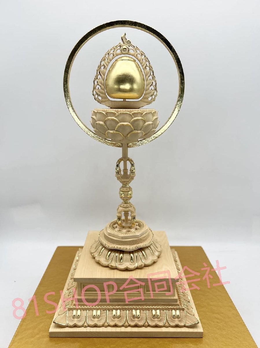 - 「81SHOP」密教法具 摩尼宝珠 桧木 金泥 火宝珠 仏塔 舎利塔 総高29cm