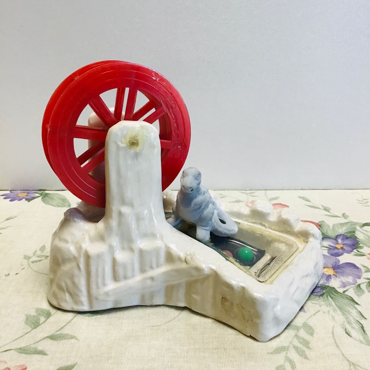 > 昔懐かしい陶器の水中アクセサリー 創作 恐竜 川水車 白 中 ① 横幅 約140×奥行き90×高さ100mm 260g 4974230000170