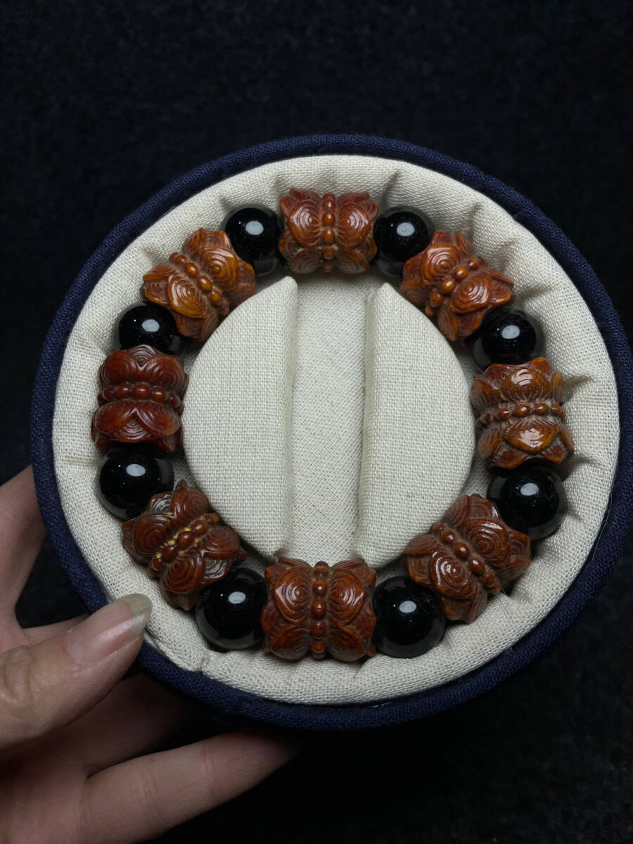 - 『清・錦盒・ 箱付・牛骨手串・仏珠・ 経年加持・根付・裝身具』極細工 置物 古賞物 中国古玩 中国古美術