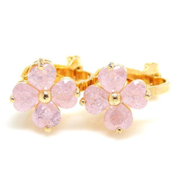 - 即決★YP-3 訳有品 極上の逸品 絢爛 レディース 美品 ピンククローバー CZダイヤモンドイヤリング ジルコニア 限定 クリップ式