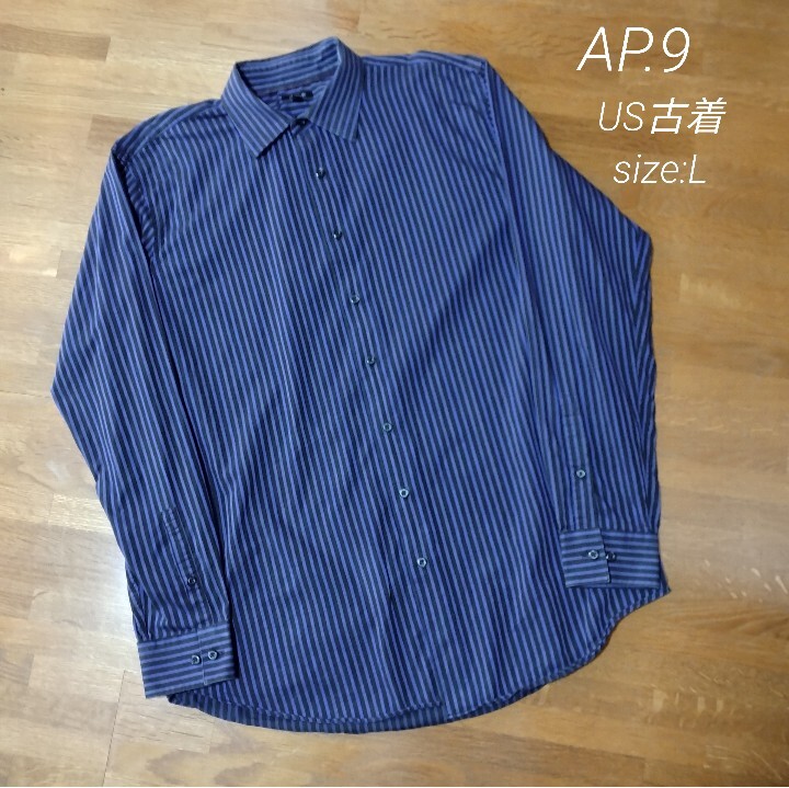 - AP.9 US古着 長袖シャツ 黒 青 ストライプMen's size:L