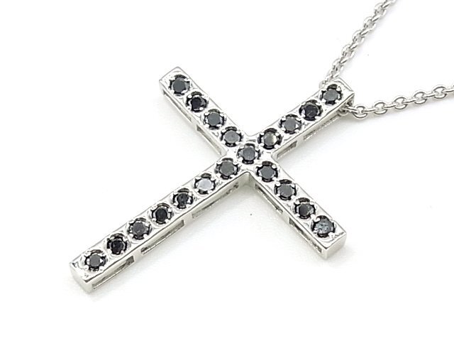 > g20277 750/K18WG ブラックダイヤ0.50ct クロスネックレス USED 美品 6.2g 45cm アジャスター付