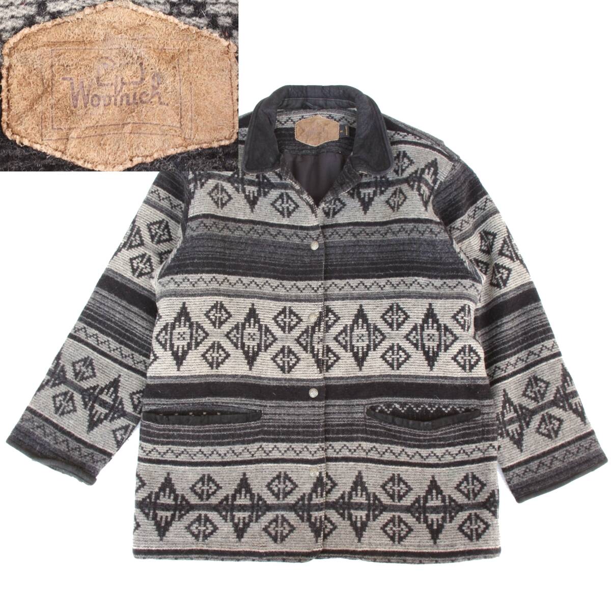 > (44640)WOOLRICHウールリッチMADE IN USAネイティブ柄ウール ジャケットM (アメリカ製ヴィンテージ ブランケット黒灰コート8714コンチョ)