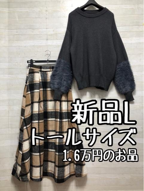 - 新品☆Lトール♪袖シャギーニット&ロングスカート♪1.6万円のお品〇B821