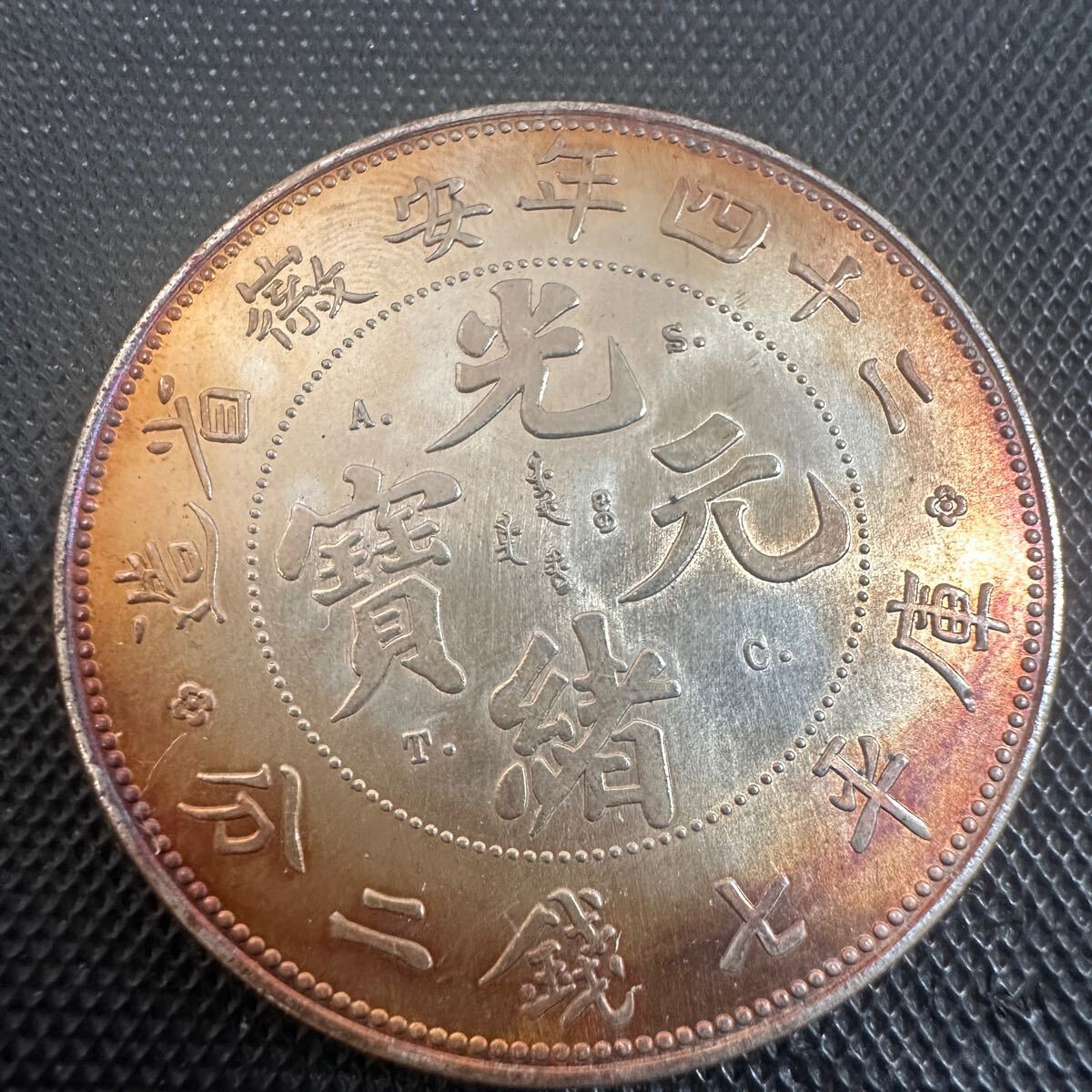 - 中国古銭 大清 光緒元宝 銀幣 極美品 希少 大型コイン 二十四年安徽省造 庫平七銭二分 銀貨 重さ約26.5g 大型コイン S77