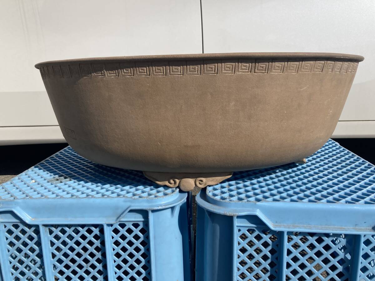 - 美品 高砂庵 烏泥獣面楕円鉢 中国宜興 岩崎大蔵