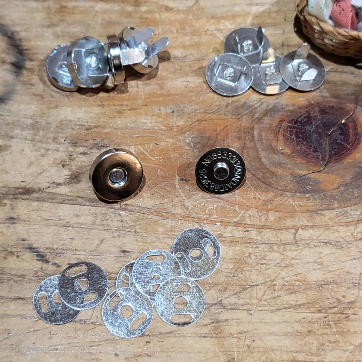 - レザークラフト マグネットホック10組セット (直径14mmx足8mm シルバー)