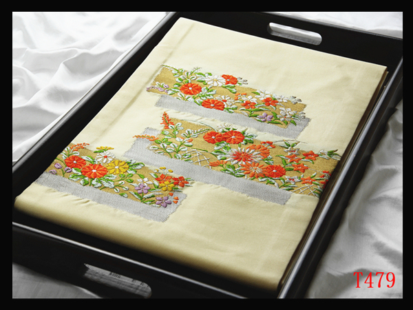 - 蔵【T479】厳選逸品 唐織 秋草紋 女郎花色地 気品豊かに 正絹純金糸高級美術名古屋帯 ◇検◇簪着物袋帯和装小物帯締め