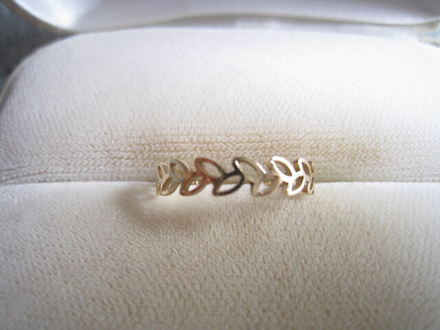 - [SAMU]素敵!!葉形幅3.8mm k14金イエローゴールド指輪#12号★美品!