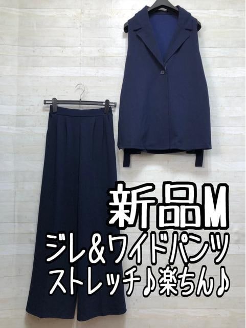 - 新品☆M♪紺系♪ジレ&ワイドパンツのセットアップ♪ベストスーツ♪楽ちん〇B924