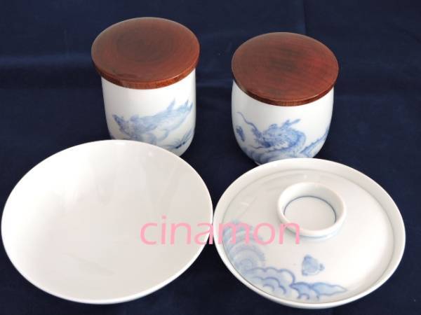 - 有田焼 楽山 銘窯 夫婦茶碗&湯飲み ペア(イノシシ/猪/竜/龍/ご飯茶わん/飯碗/湯のみ/コップ