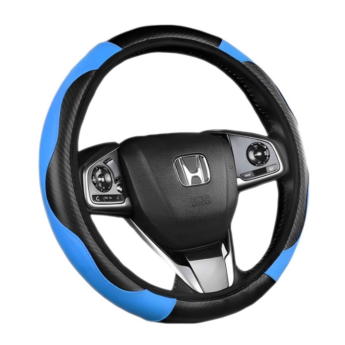 > 【未使用品】ハンドルカバー 車 滑り止め ステアリング カバー アクセサリー ドライブ グリップ くるま ハンドル カーボン ブルー 青