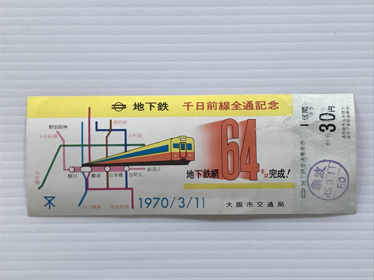 - 昔の切符 記念切符 地下鉄千日前線全通記念 1970年3月11日 地下鉄普通乗車券 大阪市交通局 難波から30円 HF6819 くるり岸田繁