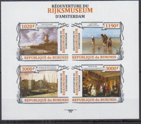 - ブルンジ切手『アムステルダム国立美術館』4枚シート 無目打