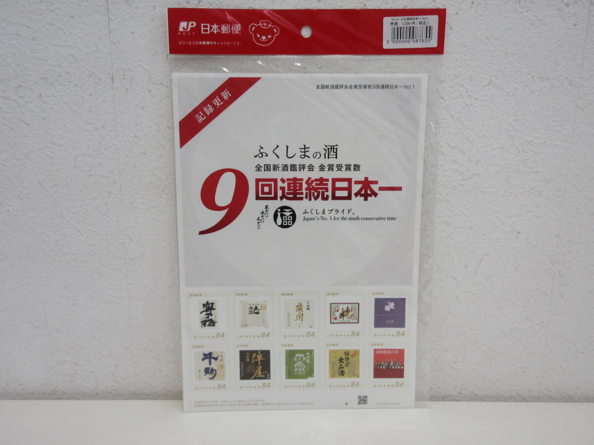 - 未開封 福島県 ふくしまの酒 9回連続日本一 フレーム切手 84円×10枚