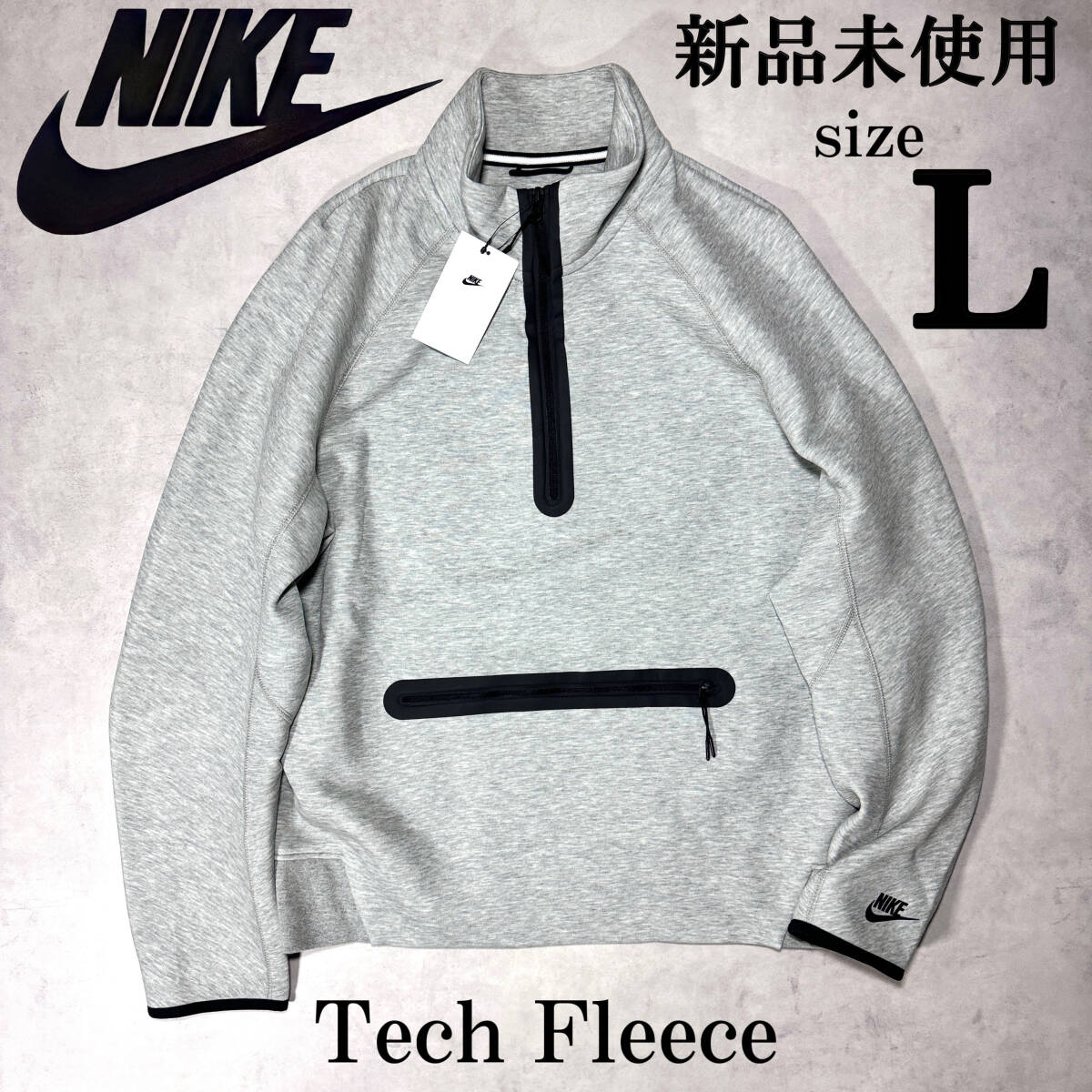 - 新品 Lsize ナイキ テックフリース スウェット ハーフジップ シャツ NIKE TECH FLEECE 滑らかな肌触り 人気 定番 上質 グレー パーカー