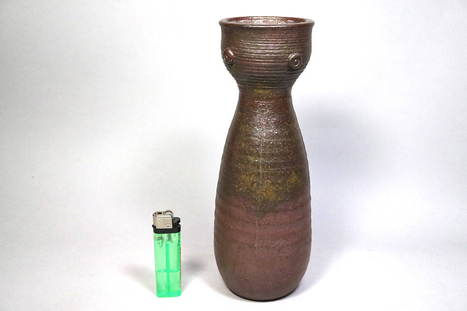 > ty21) 備前焼 陶弘/在印 擂座文 花入 花生 花瓶 ・箱無し <茶器 花器 花生 花入