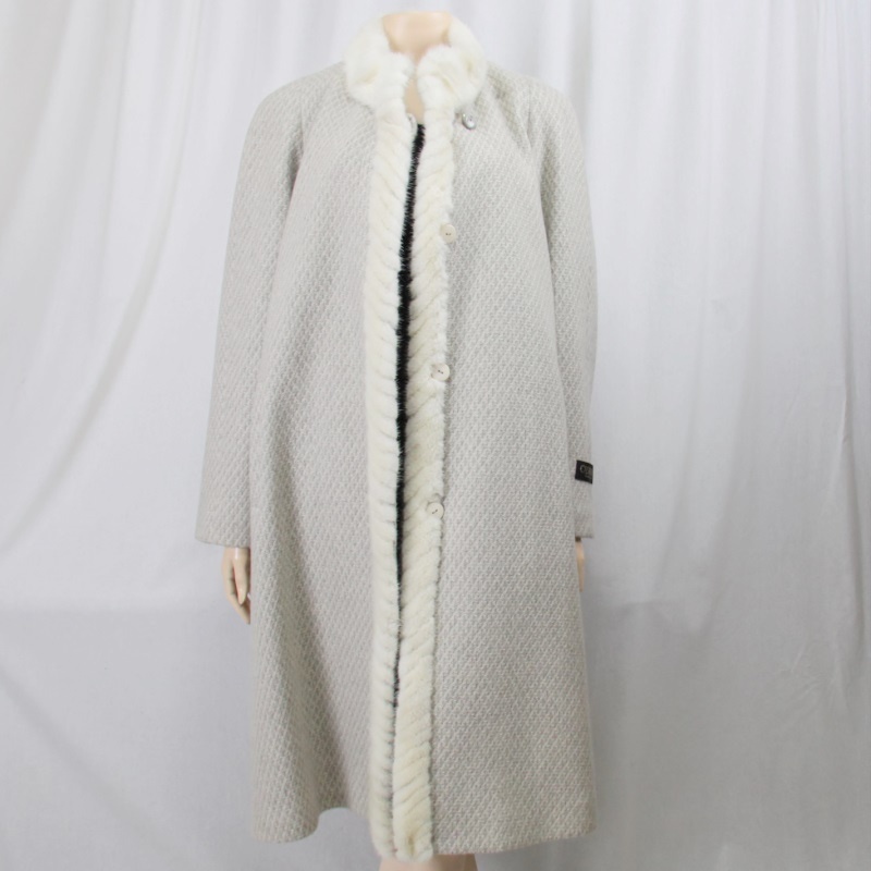 - ★カシミヤ100% ミンク ロングコート 毛皮 リアルファー カシミヤ ミンクトリミングロングコート★
