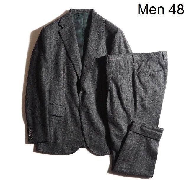 - K9113P ▼Stile Latino スティレラティーノ▼ VINCENZO フランネル ウール スーツ グレー チョークストライプ 48 秋冬 rb mks