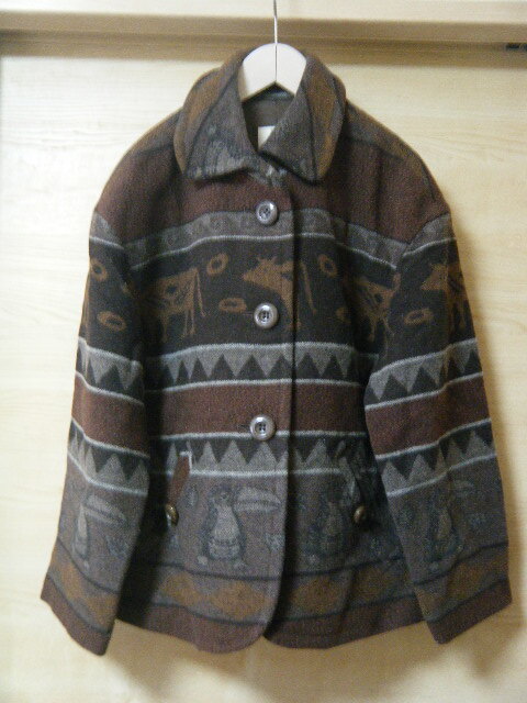 - Lapin レトロ ジャケット サイズF A0237 茶系 エジプト風柄 レディース ヴィンテージ
