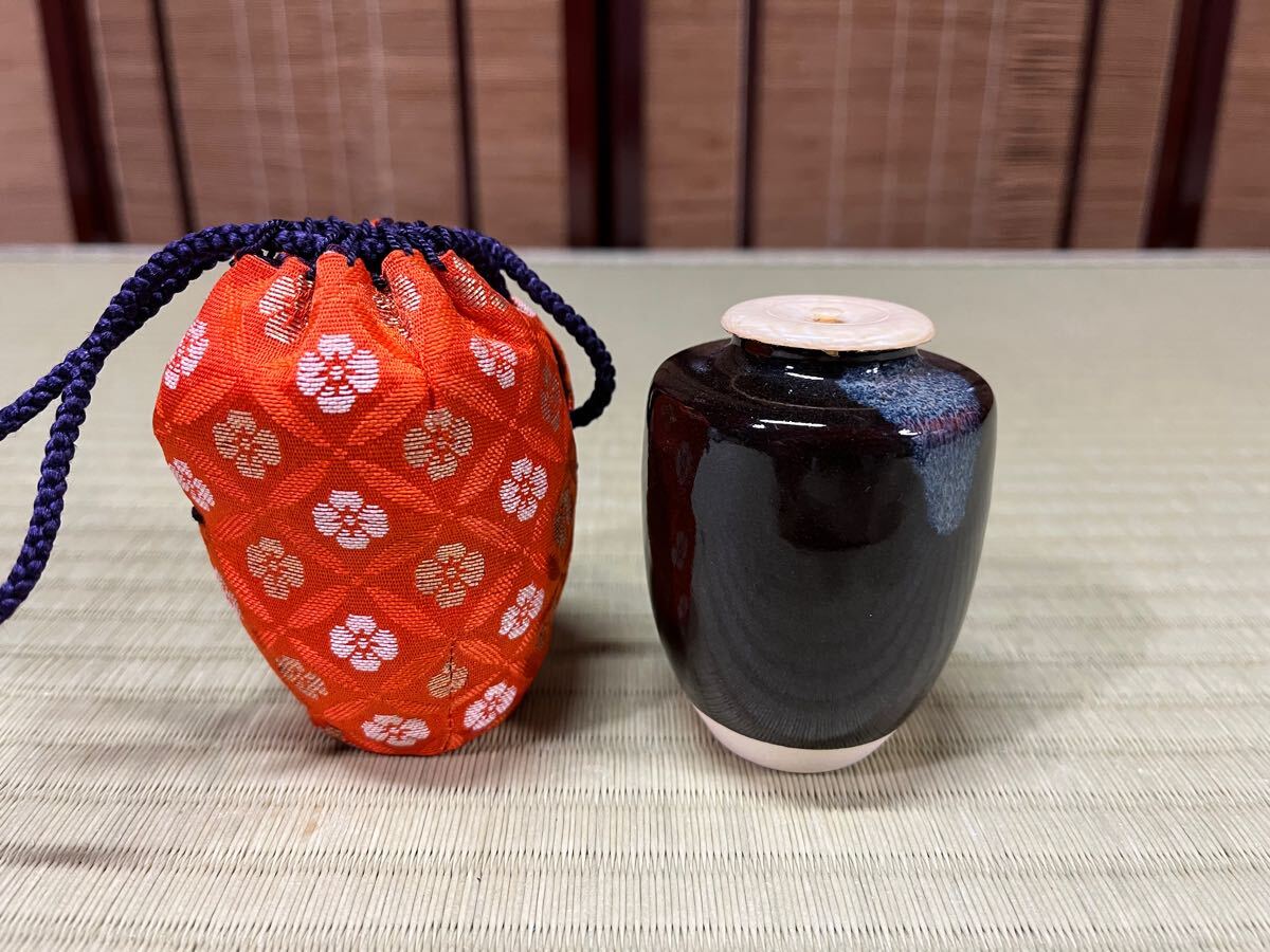 - 京都清水焼 加藤景山 肩衝茶入 茶入 仕覆付 茶道具 茶器
