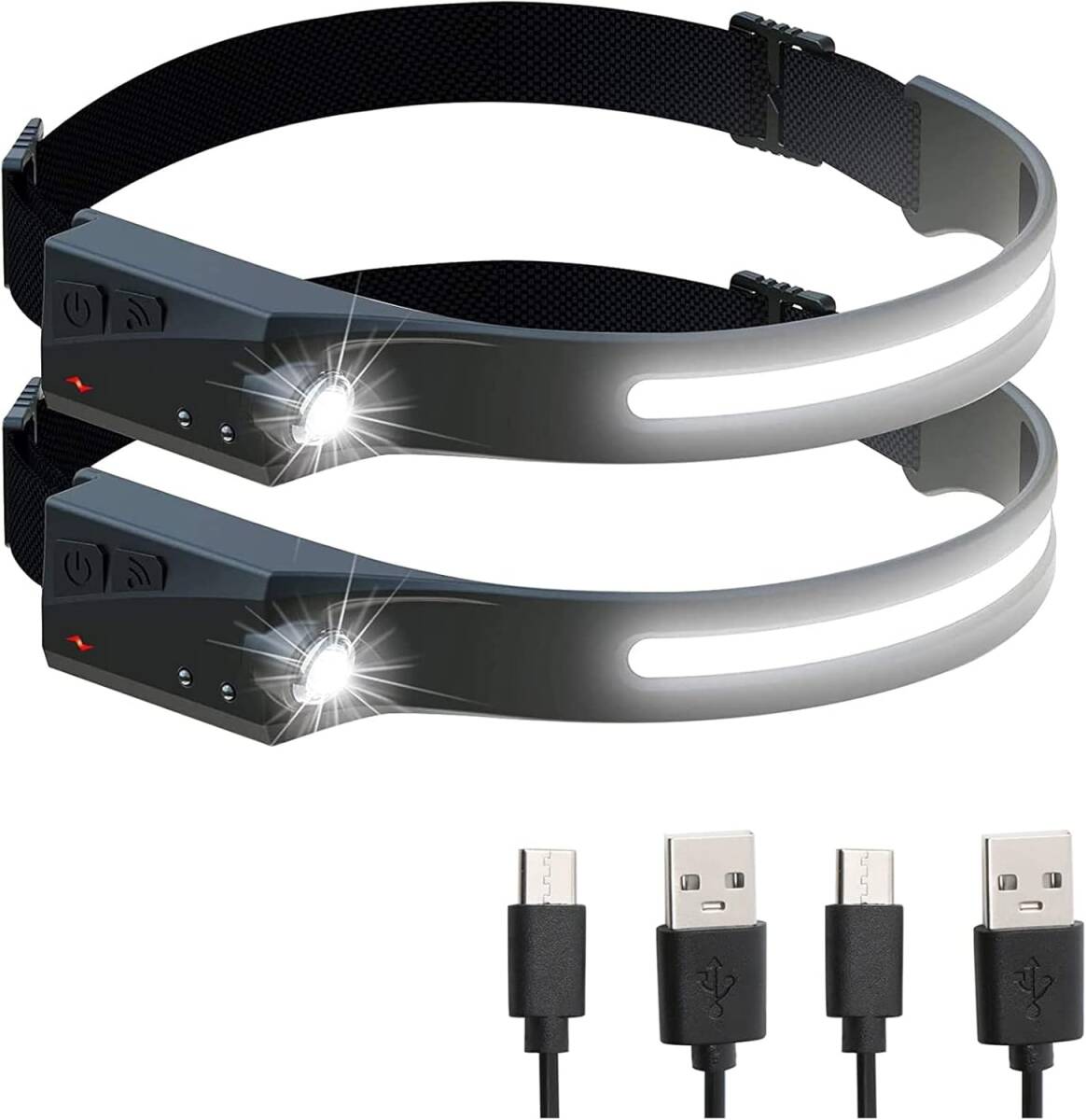 - タイムセール!ledヘッドライト 高輝度 アウトドア用ヘッドライト 充電式 防水 夜釣り 作業灯 懐中電灯 登山 防災/停電に最適 (2点セット)