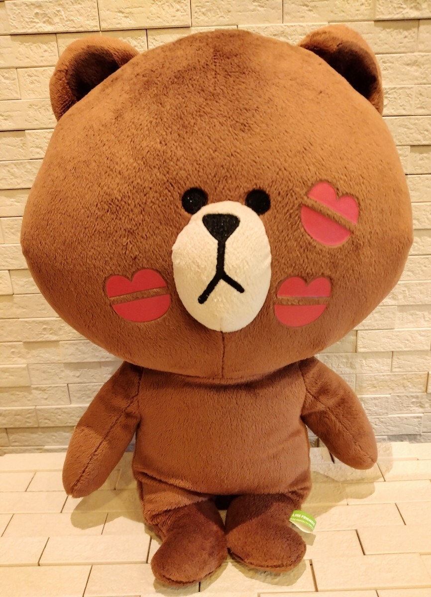 - ラインキャラクター ブラウン ぬいぐるみ キスマーク BIGサイズ くま LINE
