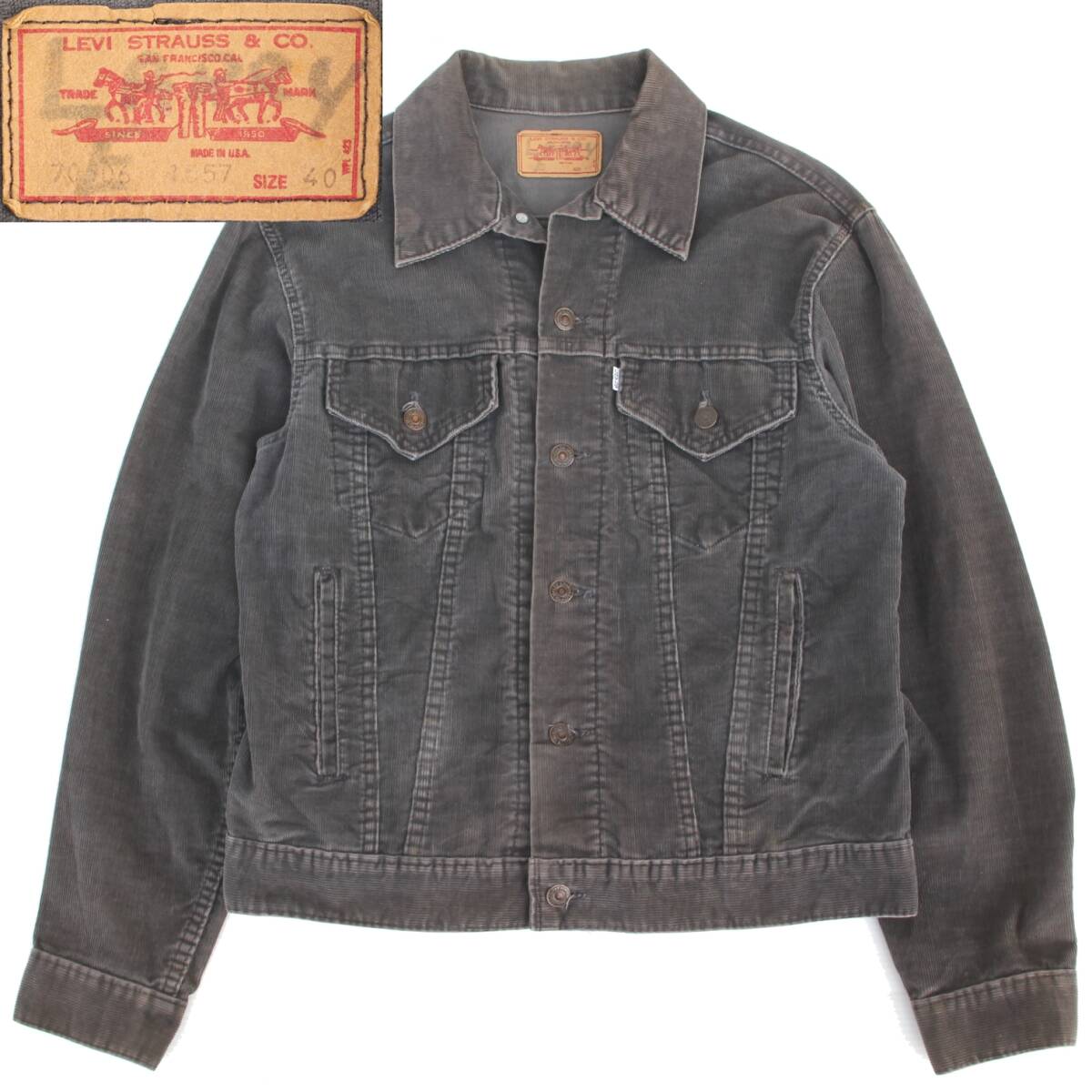> (44608)良品70s-80s LEVISリーバイス70506-1557コーデュロイ ジャケット40 (USA米国製アメリカ ヴィンテージ スモールe灰ポケット付グレー)