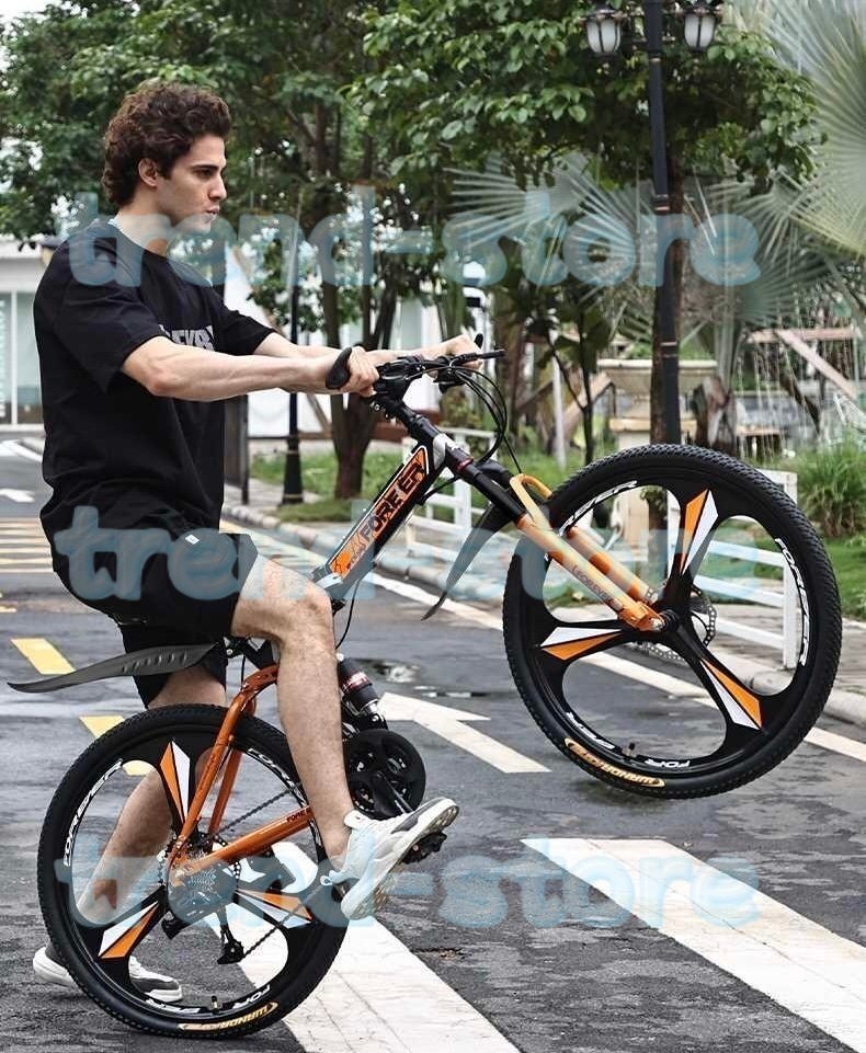 > 品質保証☆折り畳みマウンテンバイク26インチ 街乗り 通勤 荒野越え 通学 泥除け 装備 軽量アルミフレーム 超高炭素鋼フレーム 2