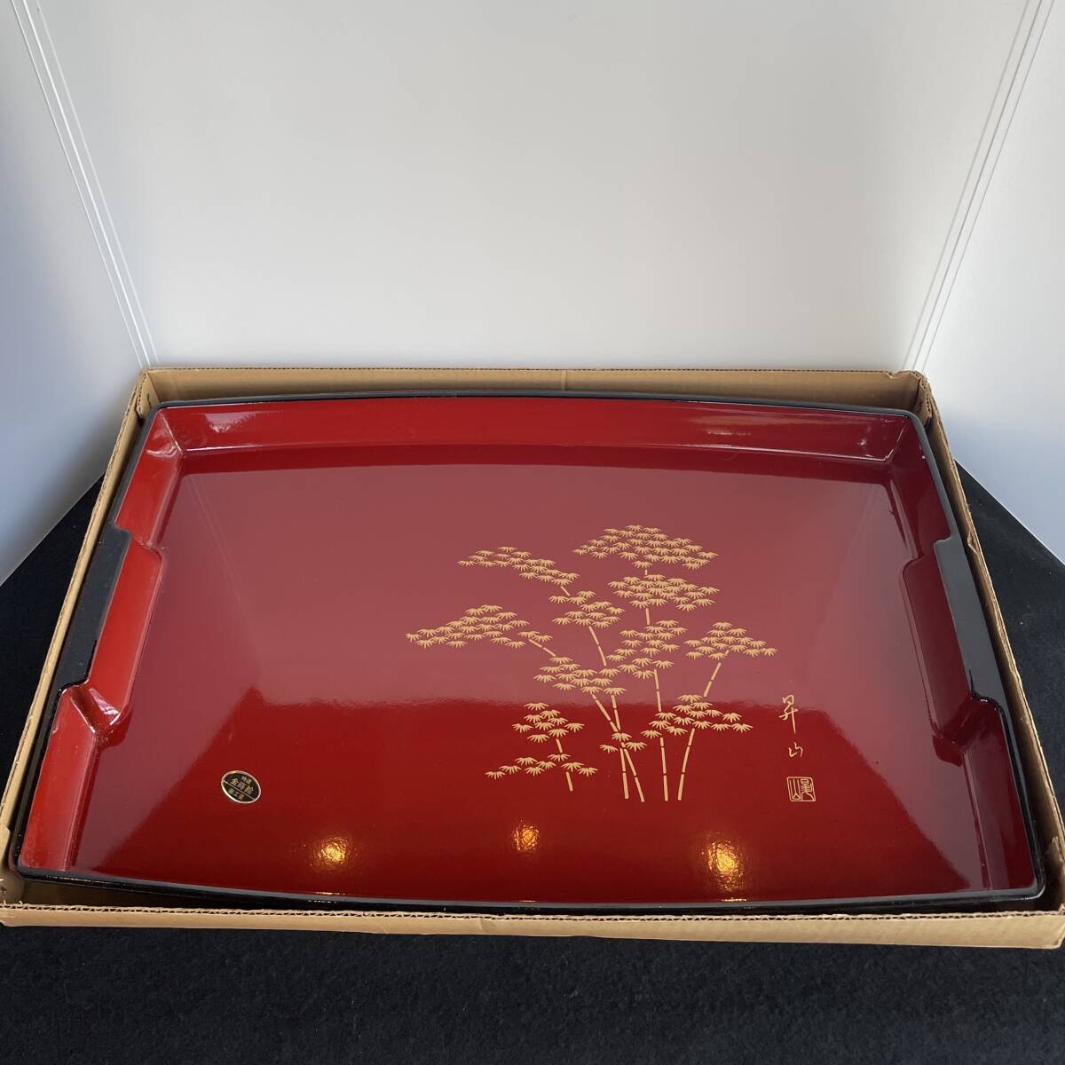 - 新品 未使用 高級 漆器 脇取盆 角盆「昇山」金蒔絵 大型 竹 朱 金彩