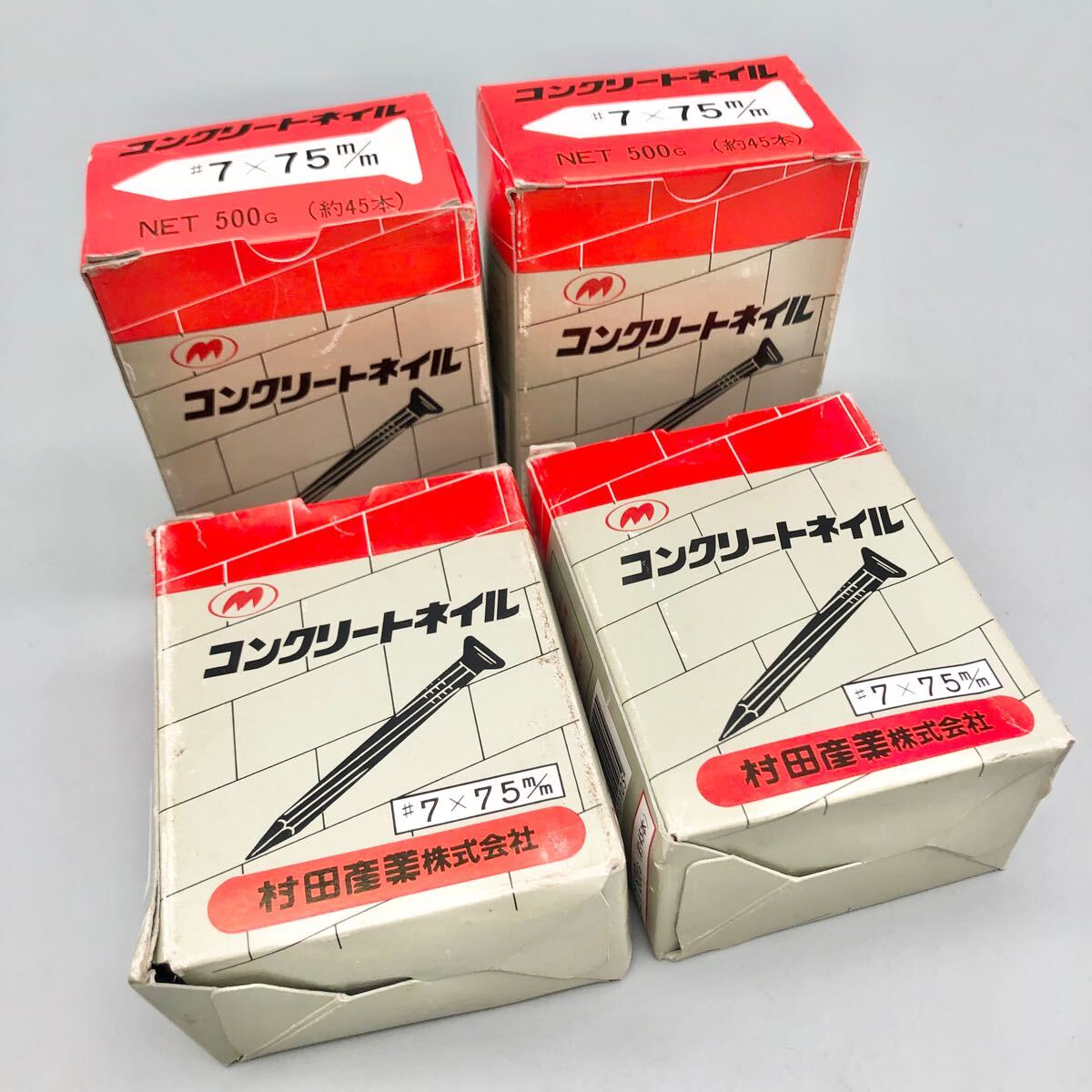 - [新品 未使用] 村田産業 コンクリートネイル 釘 #7×75mm 4箱 約180本 セット 重さ約2.0kg ユニクロメッキ 建築 現場 金物屋 在庫 まとめ