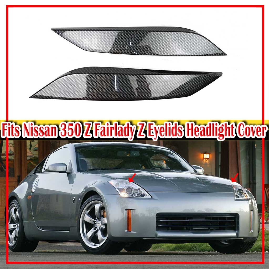- 【即納品】カーボン調(ABS材質)2002-2008 日産350Z フェアレディZ Z33 5代目 エアロフロント アイライン ヘッドライトカバー 左右セット