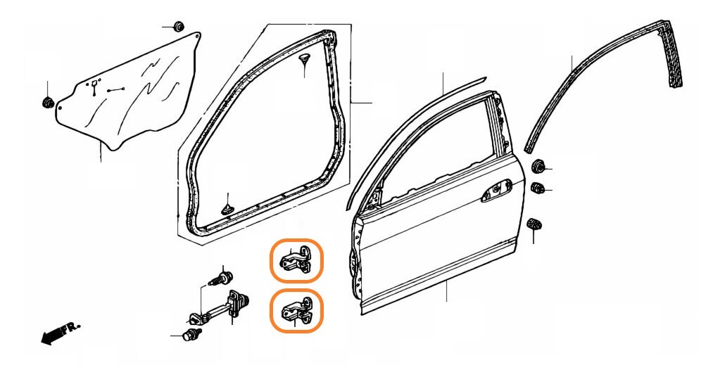 - ホンダ インテグラ DC5 タイプR 未使用 純正 フロントドア ヒンジ 右 外装 サイド 金具 H0619-2