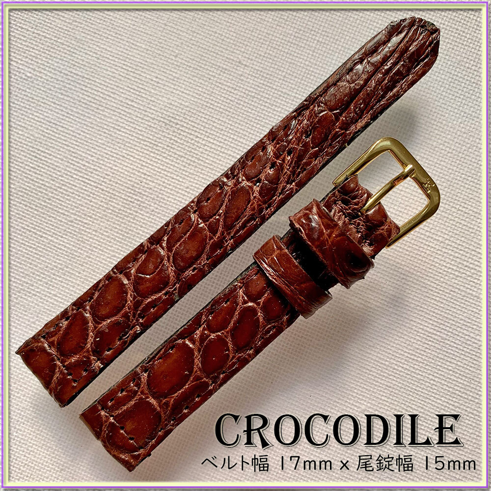 > SALE!1点物 別注 17mm 本革 クロコダイル ワニ革 時計ベルト イタリアンブラウン ITALIAN BROWN 高品質 玉符模様 HANDMADE 職人技