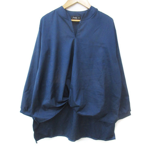 - アミュレット Amulet チュニック シャツ ブラウス 長袖 スリットネック 無地 L 紺 ネイビー /FF7 レディース