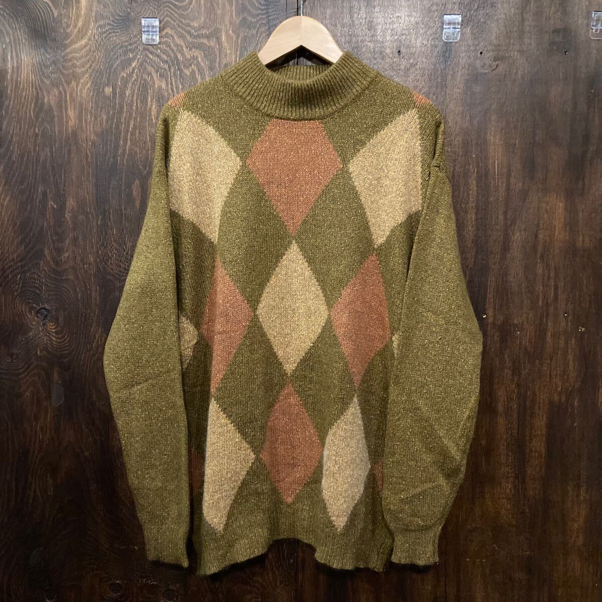 - m.j. carroll モックネック アーガイルセーター アメリカ古着 ニット アーガイルニット ハイネック セーター