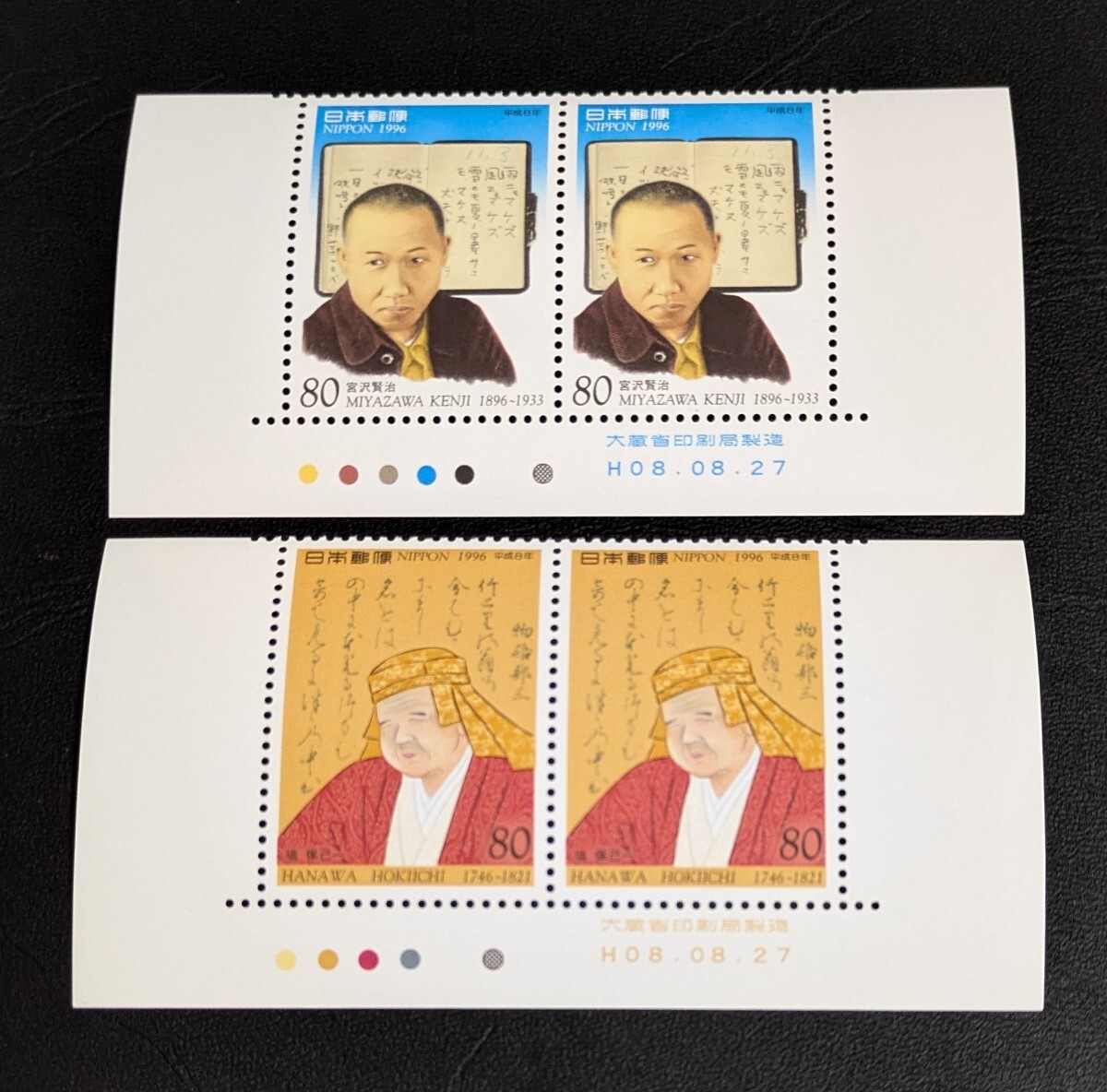 - 1996年・記念切手-文化人(第2シリーズ)第5集・2種類(銘版,CM付)