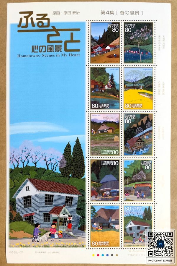 - [24060726] ふるさと切手【ふるさと心の風景・第4集】シート「春の風景:東京 宮城 広島 北海道 京都 静岡 佐賀 石川」80円×10 2009年