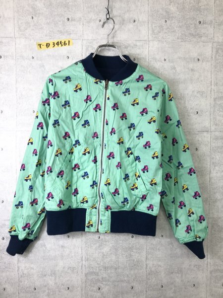 > RCWB ロデオクラウンズ レディース ローラースケート柄 スケボーワッペン リバーシブル ブルゾン S ミントネイビー