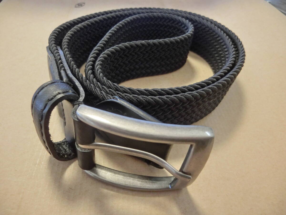 - 伸縮ベルト カジュアル 編みベルト メンズ 紳士ベルト 全長100cm メッシュベルト 編み込み 無段階 穴なし ブラック カジュアル 中古